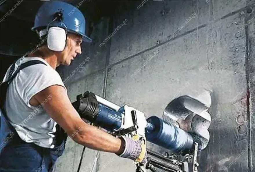 რკინაბეტონის კედლის გაჭრა, გაბურღვა,ალმასის გვირგვინით.