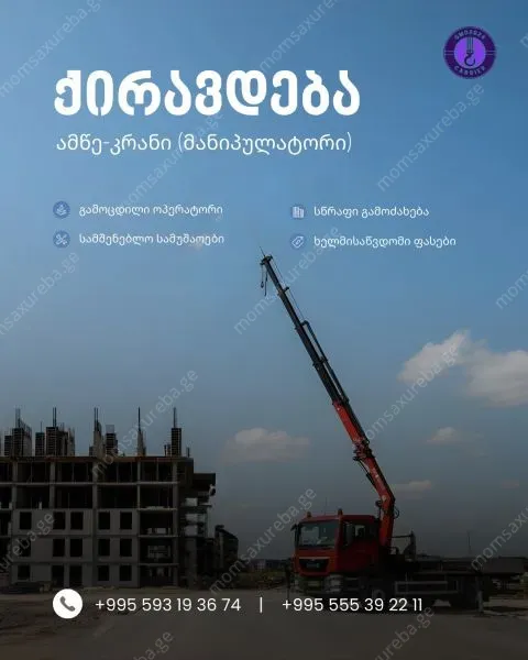 გთავაზობთ ამწე-კრანის მომსახურებას სამშენებლო და სამონტაჟო სამუშაოებისთვის