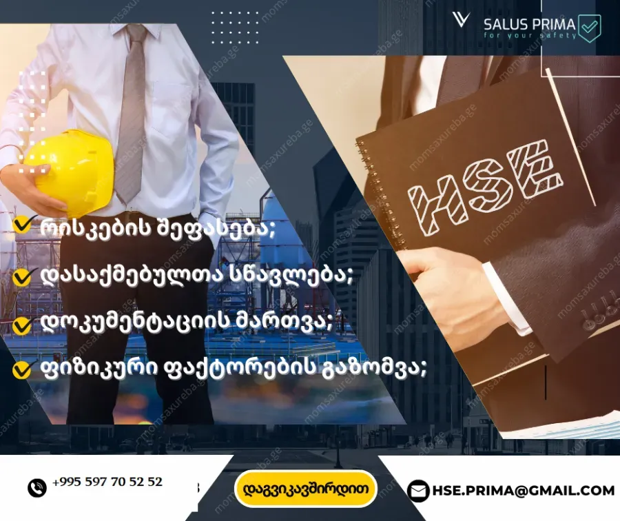 ორგანიზაციაში ფიზიკური ფაქტორების : მიკროკლიმატი,ს ხმაურის, განათების დონის გაზომვა დაკალიბრებული ხელსაწყოებით სერტიფიცირებული სპეციალისტების მიერ.