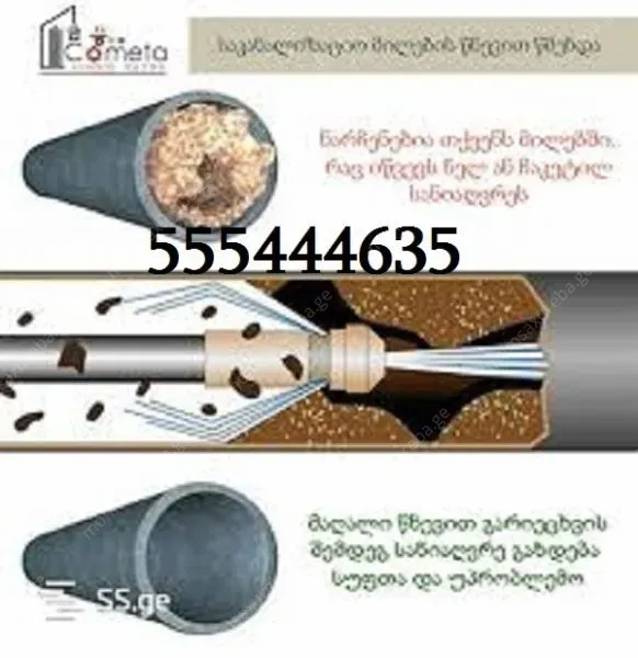 კანალიზაციის გაწმენდა წნევით - მეტრა 40 ლარი