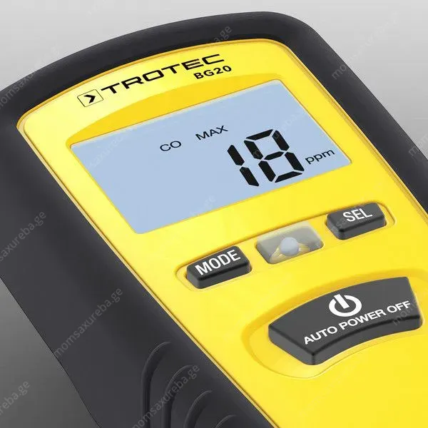 ხელის საზომი მოწყობილობა ჩართვიდან რამდენიმე წამში მზადაა მუშაობისთვის და სწრაფად და საიმედოდ იჭერს CO კონცენტრაციებს 0-დან 1000 ppm-მდე. მნიშვნელობები განისაზღვრება ზუსტად ± 10 ppm-მდე და ნათლად იკითხება დიდ, განათებულ ეკრანზე. საჭიროების შემთხვევაში, ათი გაზომილი მნიშვნელობის შემდგომი შენახვა შესაძლებელია პირდაპირ BG20-ში.