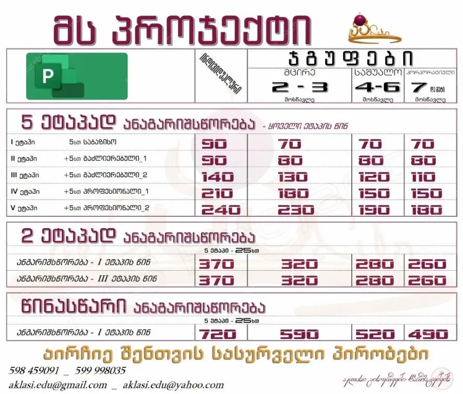 *FB: აკლასი. მობ: 598 459091, 599 998035