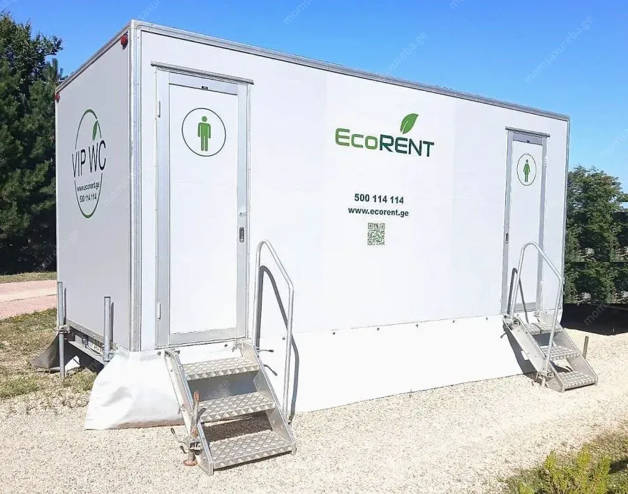გთავაზობთ უმაღლესი კლასის მობილურ საპირფარეშოებს ელიტარული ღონისძიებებისთვის. იდეალურია ქორწილებისთვის, კორპორატიული საღამოებისა და გადასაღები მოედნებისთვის. გარანტირებული ჰიგიენა და ესთეთიკა.