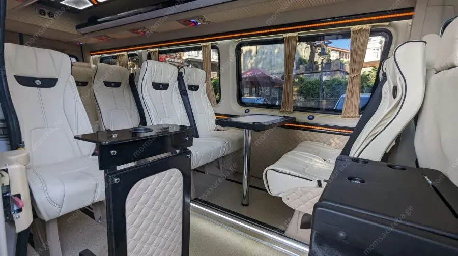 გთავაზობთ მიკრო ავტობუს, კომფორტულ VIP მომსახურებისთვის, მოვემსახურებით ტურისტებს საქართველოს და სომხეთის მიმართულებით. ფასი შეთანხმებით. ადგილების რაოდენობა 17+1